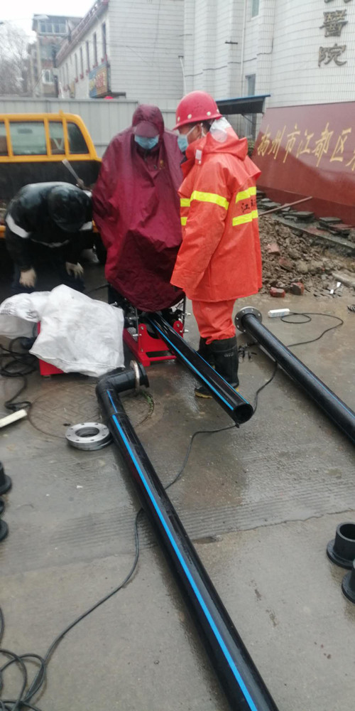 疫情就是命令,保供水就是責(zé)任。龍泉公司在接到緊急任務(wù)后,立即明確專人負(fù)責(zé),成立施工突擊隊(duì),并迅速派人赴區(qū)第三人民醫(yī)院擴(kuò)建工程現(xiàn)場(chǎng)實(shí)地查勘,向院方詳細(xì)了解擴(kuò)建工程供水需求、施工進(jìn)度安排等,并與院方共同研究,現(xiàn)場(chǎng)確定擴(kuò)建工程的接水方案。2月15日上午,搶修人員佩戴口罩、安全帽,進(jìn)行了體溫測(cè)量,冒著雨雪趕赴現(xiàn)場(chǎng),投入到緊張的施工工作中,由于前期施工方案細(xì)致、工作準(zhǔn)備充分,經(jīng)過(guò)10個(gè)小時(shí)的奮戰(zhàn),于當(dāng)天晚上8點(diǎn)順利完成了自來(lái)水管道的擴(kuò)建安裝任務(wù)。