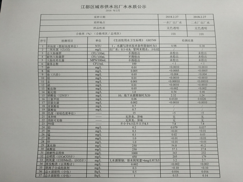 水質(zhì)公示