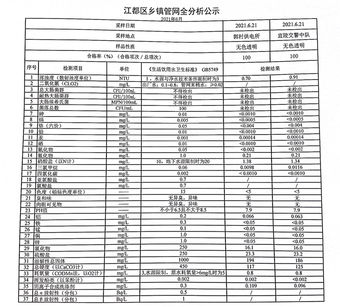 水質(zhì)公示