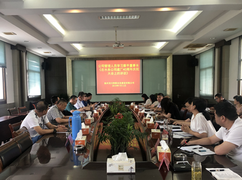 7月11日下午,龍川水務公司召開中層以上管理人員會議傳達、學習龍川控股集團蔡平董事長在公司建廠40周年慶祝大會上的講話。
