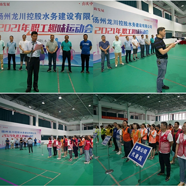 為熱烈慶祝中國共產黨建黨100周年,推動企業精神文化建設,進一步營造團結協作、拼搏向上的團隊文化氛圍, 6月20日下午,揚州龍川控股水務建設有限公司開展了以“展風采·啟征程·助發展”為主題的首屆職工趣味運動會,水務公司總經理兼黨總支副書記王智勇同志、黨總支副書記兼工會主席石元忠同志等領導班子成員,水務公司及各子公司共五支代表隊以及觀賽的干部職工近百人參加。