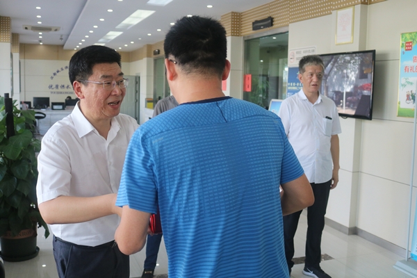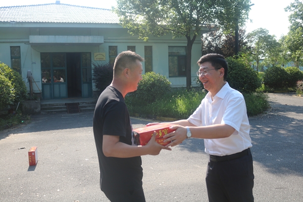 714下午,在總經理王智勇的帶領下,公司領導班子代表和相關職能部門帶著防暑降溫物品先后深入供水生產、水質化驗檢測一線、管道施工現場和鄉鎮供水所、污水處理廠,集中進行夏季高溫慰問活動,為默默揮灑汗水的一線工作者們送上清涼飲料等慰問品。王智勇總經理每到一處都詳細詢問了他們的工作和生活情況,對大家不畏酷暑堅守工作崗位的精神表示衷心的感謝,并叮囑他們在高溫天氣下勞作要保重身體,既要戰高溫斗酷暑完成本職工作,也要確保身心健康,時刻注意高溫下的安全勞作。