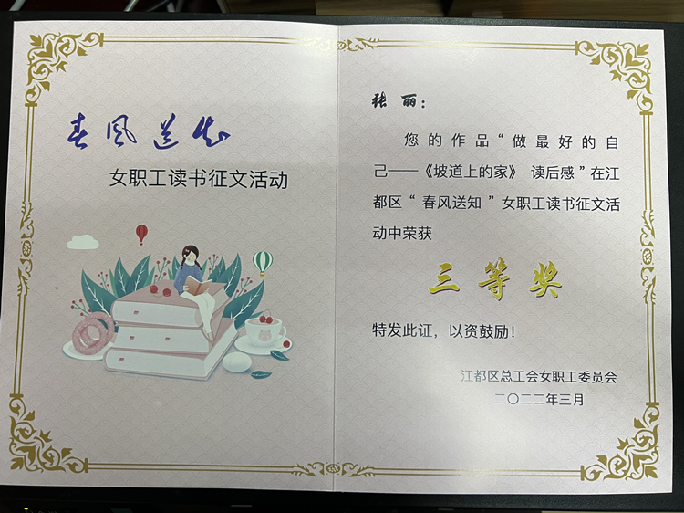 喜報 │“做最好的自己—《坡道上的家》讀后感”榮獲“春風送知”女職工讀書征文活動三等獎