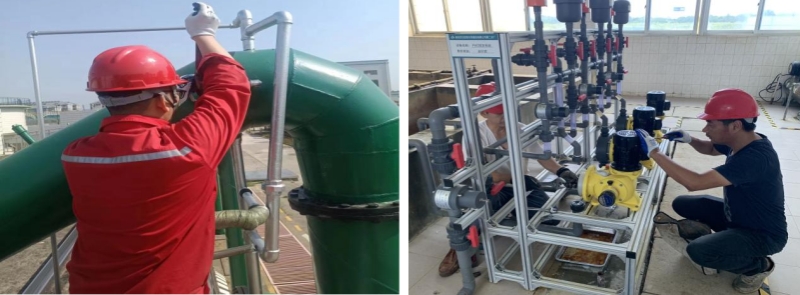 設(shè)施維護(hù)方面,第二、三水廠制水運(yùn)行人員增加供水設(shè)施的巡查頻次,細(xì)致察看設(shè)備的運(yùn)行狀況。機(jī)電維修人員每天按計(jì)劃對(duì)供水設(shè)施進(jìn)行定期保養(yǎng),做好三級(jí)維修保養(yǎng)記錄,保障生產(chǎn)的穩(wěn)定。