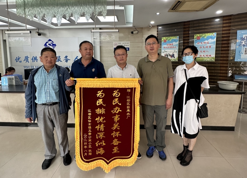 8月26日,揚州市江都區自來水有限公司收到一面繡有“為民辦事關懷備至,為民排憂情深似海”的錦旗。“沒想到自來水管道這么快就修好了,真的是感謝你們,為你們高效、優質、熱情的服務點贊!”江都區仙女鎮玉帶公寓小區的居民激動地說道。