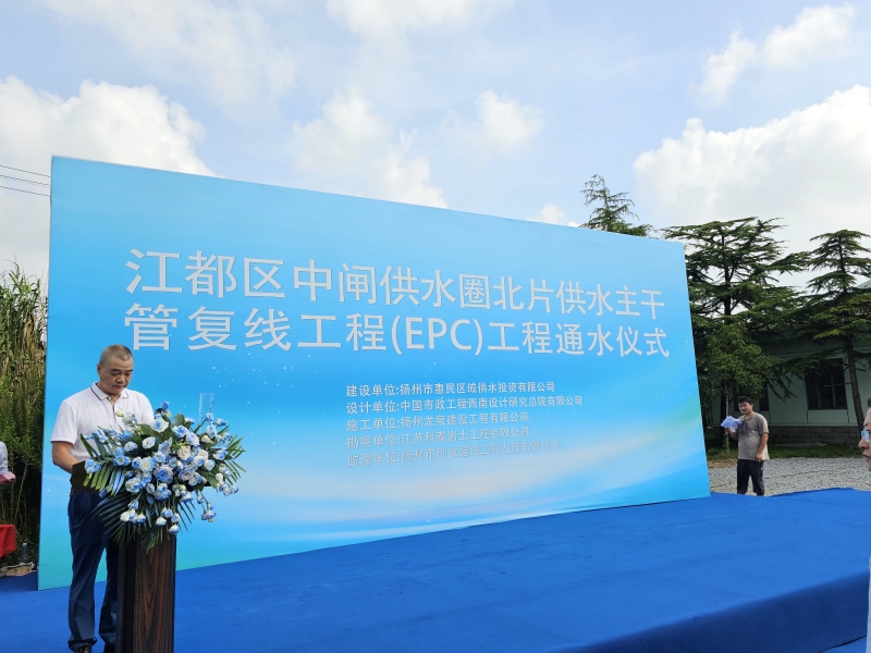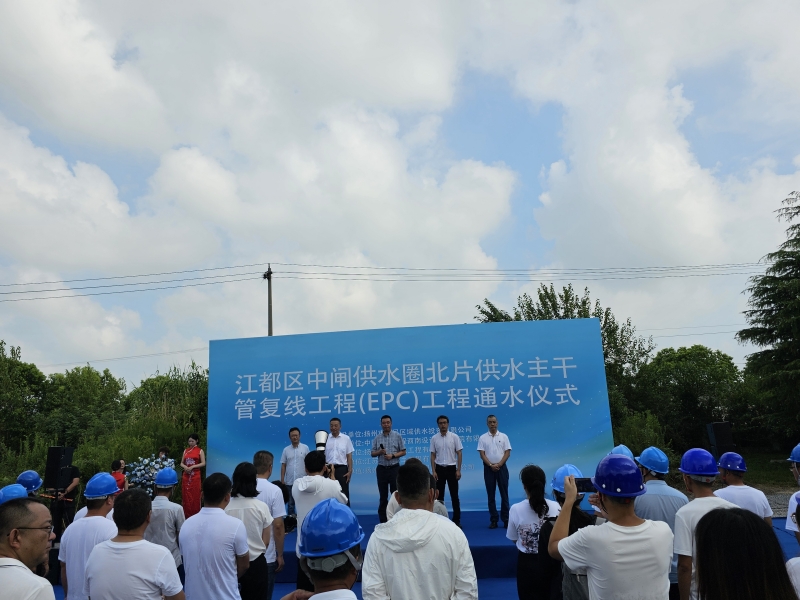 江都區中閘供水圈北片供水主干管復線工程管線通水儀式圓滿完成